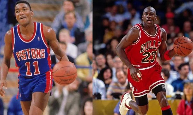 再来说说托马斯另外一个问题,那就是糟糕的人际关系处理。在乔丹首次参加NBA全明星赛时,托马斯便和其他的东部球员一同商量,要孤立作为菜鸟的乔丹,这让年轻的乔丹非常尴尬,最终首次全明星也是惨淡收场。而得知此事的乔丹,自然是火冒三丈,二人自此结下了梁子。之后便是连续在季后赛四次相遇,前三次的对决中,托马斯所在的活塞全部击败了乔丹,一度把乔丹打的怀疑人生。