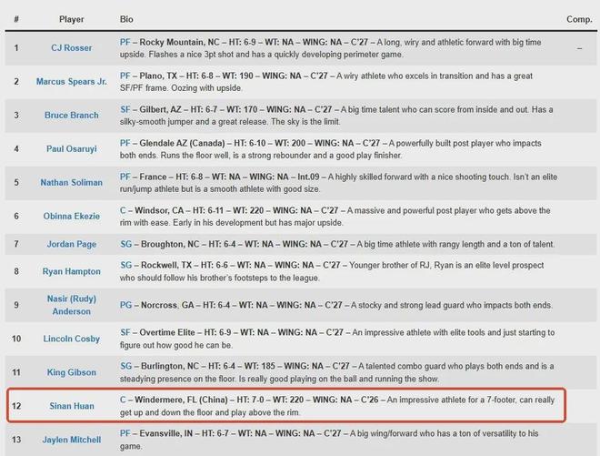 在美媒NBA Draft Room此前公布的2028年NBA选秀预测榜单中,郇斯楠于首轮第12顺位被选中,要知道杨瀚森才首轮第16顺位。