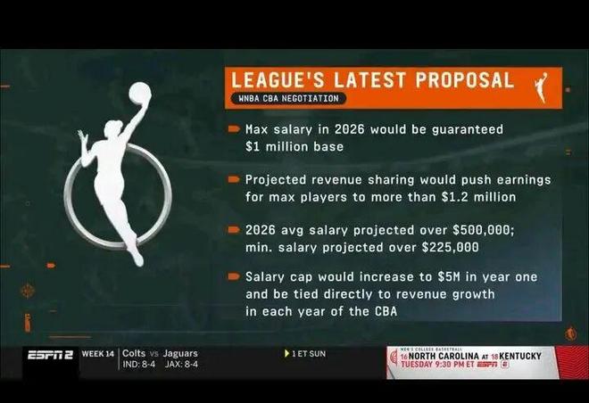 于是,工会提出核心诉求:要建立一个与联盟收入直接挂钩的分成体系。比例不必与NBA持平,但要有实际增长空间——据多方报道,工会提出的目标是30%左右。