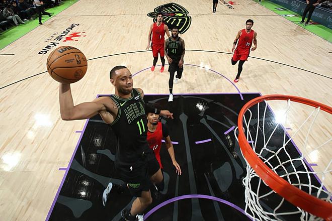 本场比赛中,鹈鹕的替补后场新星布莱斯-麦戈文斯(Bryce McGowens)面对着自己的老东家的表现算得上是令人刮目相看。麦戈文斯全场出场29分52秒,投篮11中8,三分线外5中5,罚球2中2,得到了23分7篮板2助攻2抢断,还有1次犯规,正负值更是达到了全场最高的+19。麦戈文斯在进攻端大杀四方,他展现出了全面的得分能力,他在外线投篮方面的表现更是令人刮目相看。麦戈文斯展现出了很强的个人能力,他在出手次数不算太多的情况下得到了大量的分数,给对手制造了巨大的威胁。除此之外,麦戈文斯在防守端的表现也是相当不错的,同样也是在防守端起到了很好的效果。总体来看,麦戈文斯在本场比赛中的表现算得上是攻守兼备,他的出色表现也是为球队的这场大胜做出了巨大的贡献。