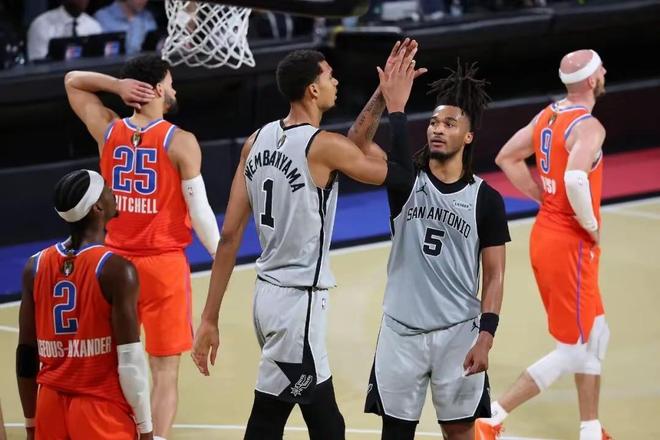 万万没想到,前几日众多NBA媒体还在讨论雷霆能否打破湖人的33连胜,今日马刺就亲手终结了这个话题,NBA杯半决赛,马刺以111比109战胜雷霆,晋级决赛,终结雷霆16连胜,本场过后,马刺的战绩来到18胜7负,超越湖人升至西部第四,湖人掉到第五。此外,马刺球星文班亚马全场出战21分钟,得到22分9篮板2助攻1抢断2盖帽,攻防两端的统治力直接让一些湖人媒体破防,赛后,湖人自媒体Purp Gold发文称:“湖人球迷们,就我今晚所见,在很长一段时间里,我们可能都无缘总冠军戒指了。”