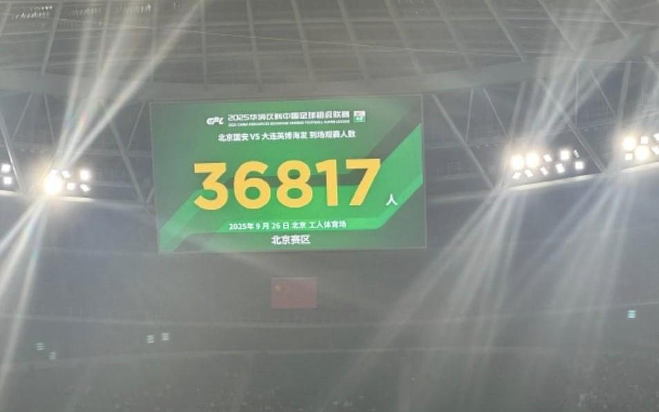 国安vs英博观众仅有36817人,创本赛季工体中超比赛最低值