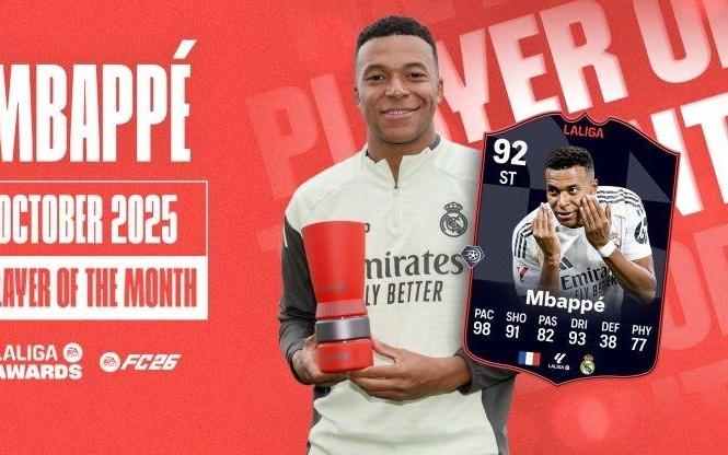 官方:姆巴佩当选西甲10月最佳球员3场全胜且均有进球