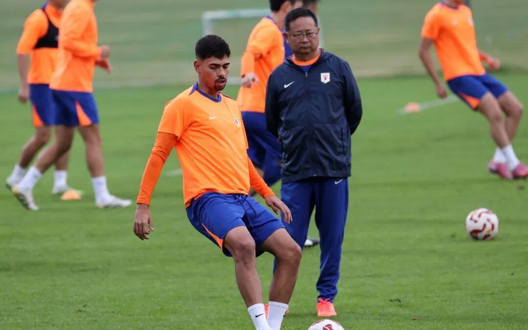 山东泰山队备战主场与云南玉昆队的中超联赛