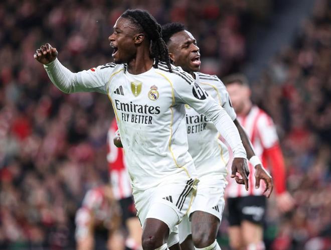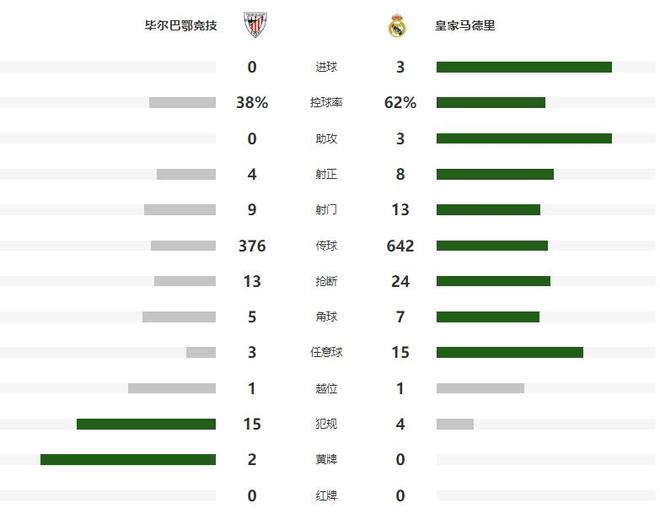 第25分钟毕尔巴鄂竞技从左路打穿皇马防线,吉鲁泽塔禁区内的大力抽射,被库尔图瓦神勇扑出,4分钟之后,贝伦格尔的绝佳单刀机会,又被库尔图瓦化解,第33分钟和第38分钟,维尼修斯也连续浪费良机,一次射门中柱,一次单刀被扑,不过半场结束之前,姆巴佩头球助攻卡马文加再下一城,帮助皇马带着2球领先,回到了更衣室。