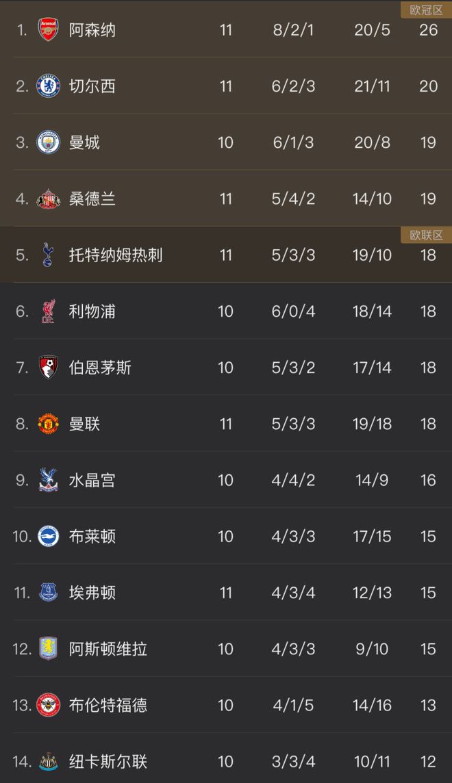 北京时间11月9日,2025-26赛季的英超联赛第11轮先赛5场。领头羊阿森纳在客场遭狙击,爆冷2-2战平升班马桑德兰。领先优势缩小至6分。而在一场强强对话中,曼联与热刺2-2握手言和。