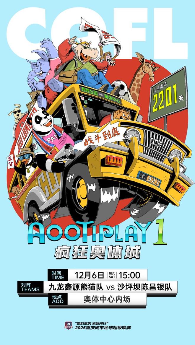 12月6日15点,本周末“渝超”(2025重庆城市足球超级联赛)将迎来主城赛区的一场重头戏——九龙鑫源熊猫队将在主场重庆奥体中心迎战沙坪坝陈昌银队。这既是主城两支劲旅的出线之争,也是重庆奥体中心足球场时隔2201天重新迎来大型足球赛事。